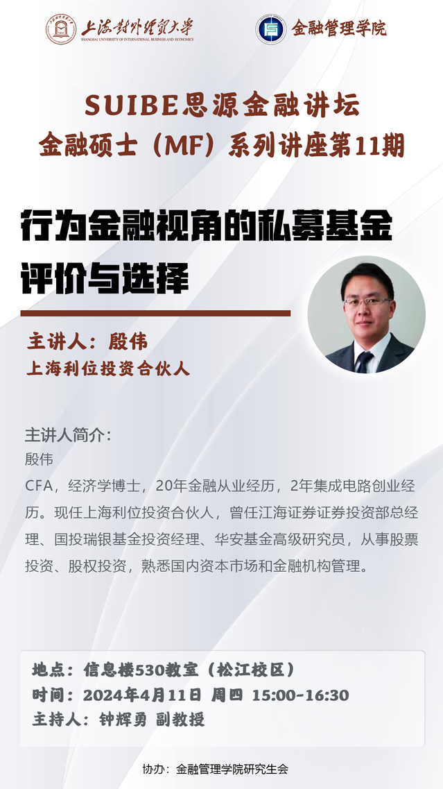 【SUIBE思源金融论坛——金融硕士系列讲座第11期】行为金融视角的私募基金评价与选择