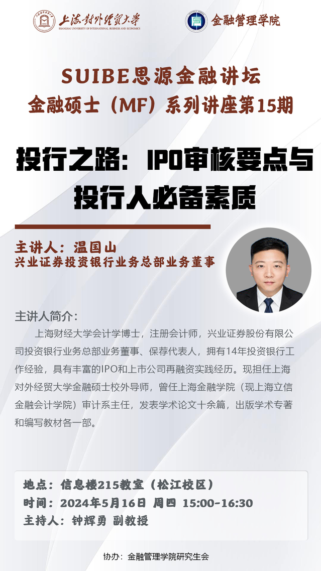 【SUIBE思源金融论坛——金融硕士(MF)系列讲座第15期】投行之路:IPO审核要点与投行人必备素质