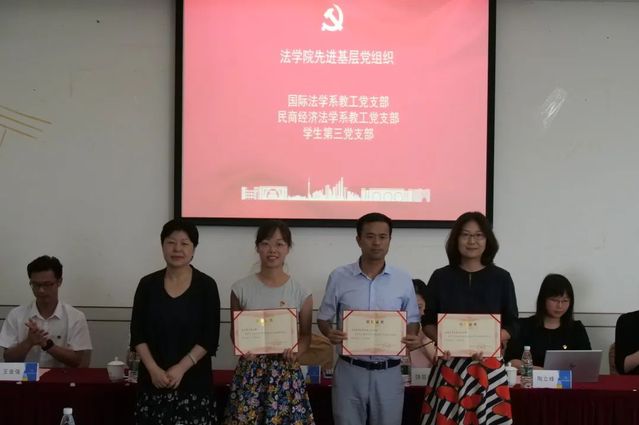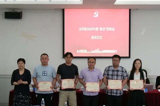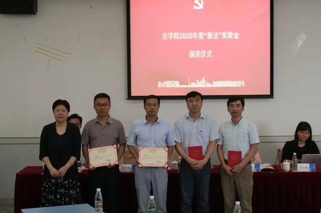 会上,饶芸燕宣读了法学院“两优一先”表彰名单和2020年度“善法”奖教金获奖名单,许玫为获奖师生颁奖。校优秀共产党员邾立军、法学院优秀党务工作者冯予婧、法学院优秀党员黄文培同学作为法学院“两优一先”代表做交流发言;王明国、宋保振、李晓珊、吴宁铂、张宗贺作为“善法”奖教金获奖代表做交流发言。