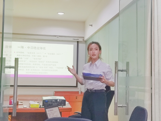2021年11月2日,上海日本研究交流中心举办2021年第二次青年学术沙龙,我院国际关系学系2019级国际政治专业杨文辉同学获邀参加并发言。