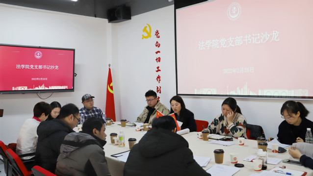 2月25日下午,法学院党委在学校党建服务中心召开新学期首期支部书记沙龙,党支部书记、党委组织员参与沙龙,共同探讨交流新学期党建工作。沙龙由学院党委书记黄静主持。