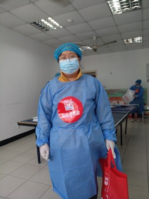 她负责区域值守和抗原检测试剂发放的工作,要在最短时间内完成3000多人次试剂发放和测试结果统计,她积极发挥专业优势,主动参与志愿者团队工作协调,帮助团队提高了工作效率。回到家来不及休息,就协助爱人上岗服务。