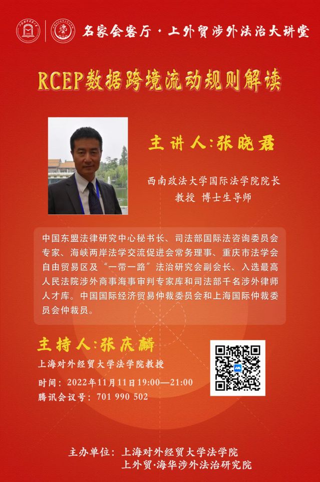 讲座预告|张晓君教授:RCEP数据跨境流动规则解读