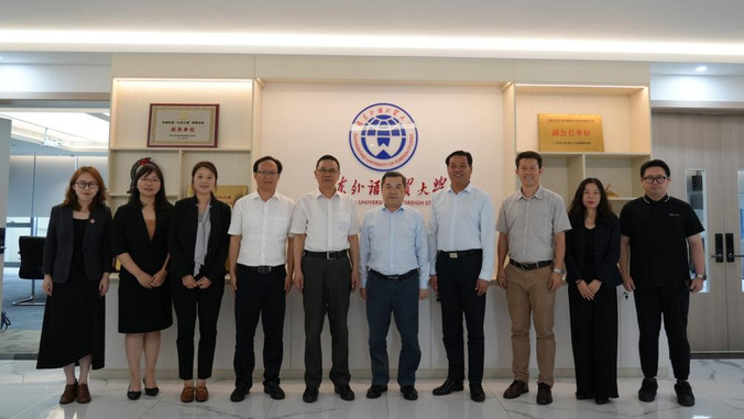 2023年5月22日,我校副校长徐永林、教务处长朱建明、法学院党委书记黄静、副院长陶立峰、外事主管柳菲菲一行赴广东外语外贸大学进行调研。广东外语外贸大学副校长焦方太,教务部部长、招生办主任陈金诗、法学院党委书记杨敏生、法学院院长陈云良、知识城校区管委会(筹)办公室副主任汤程荣、教务部副部长唐静参加调研。会议由广外贸副校长焦方太主持。