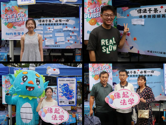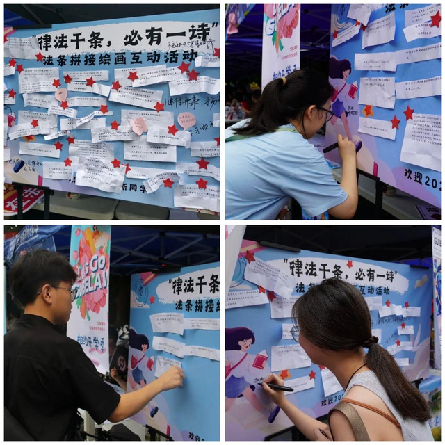 在迎新现场,学院还特设了“律法千条,必有一诗”的法条拼接绘画互动活动,里面有中华优秀传统法律文化、法律名句等,让新生在趣味参与中感受法之魅力。