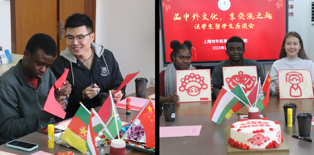 为使留学生们进一步体验中国传统文化的魅力,还特别安排了剪纸环节。当带有新年元素和喜庆意味的剪纸摆放至桌面,留学生们乐开了花。两位中国学生将剪纸分发给他们,并介绍剪纸的要领。在他们指导下,留学生们兴致盎然的动手操作,不久一个个精美的图案就呈现出来了。