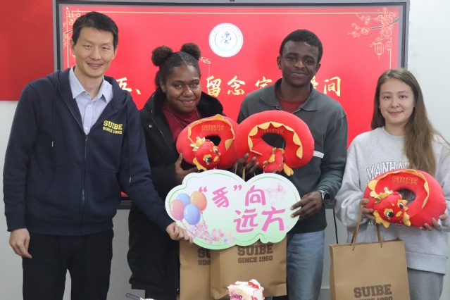 向留学生赠送新年礼物