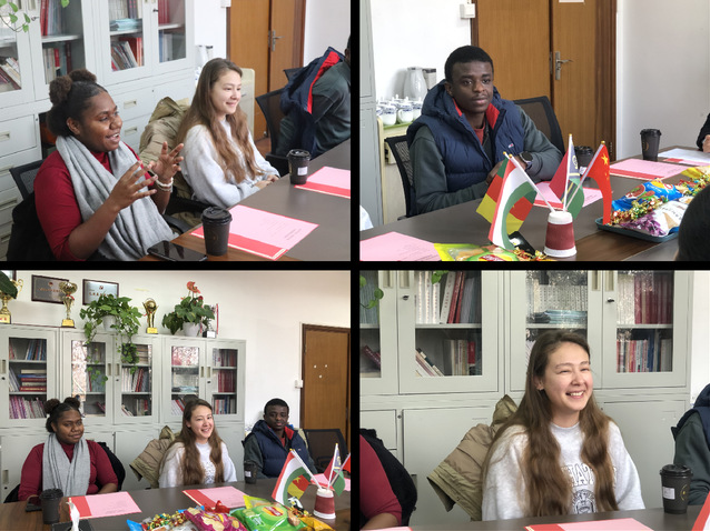来自瓦努阿图大一法学(国际经济法方向)专业艾玛、塔吉克斯坦大三行政管理专业朱梅、喀麦隆研一国际法学专业何木得依次分享了来中国学习的原因,并介绍了自己学习、生活情况以及对未来规划。