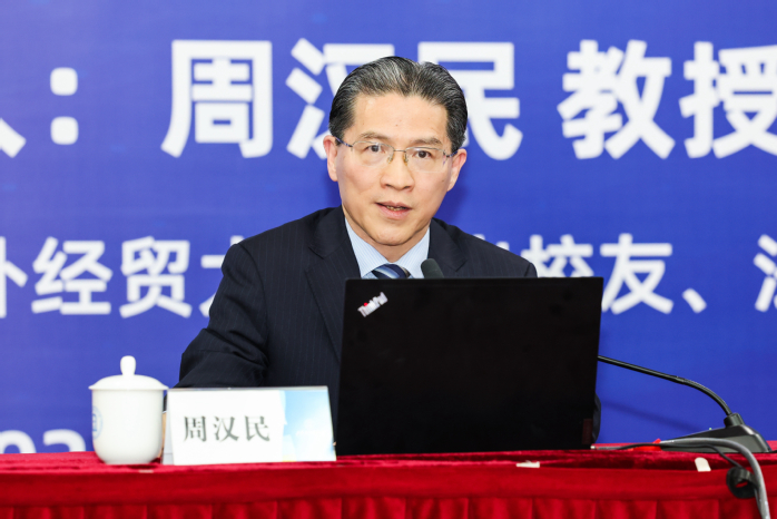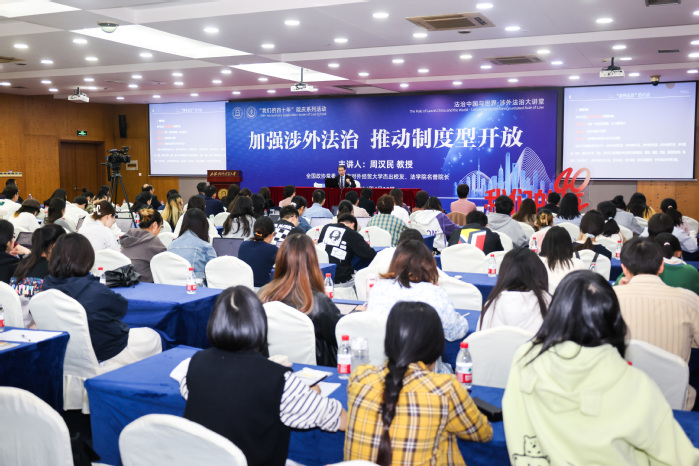 在提问互动环节,周汉民教授就中美关系、制度型开放、专业能力提升等问题回答了学生提问,并对在场同学提出殷切希望,希望大家要不断丰富自身知识架构,加强法律、外语、经贸知识的融会贯通,循序渐进拓宽知识面、齐头并进夯实法学基础、突飞猛进强化专业优势,为服务中国涉外法治建设作出贡献。