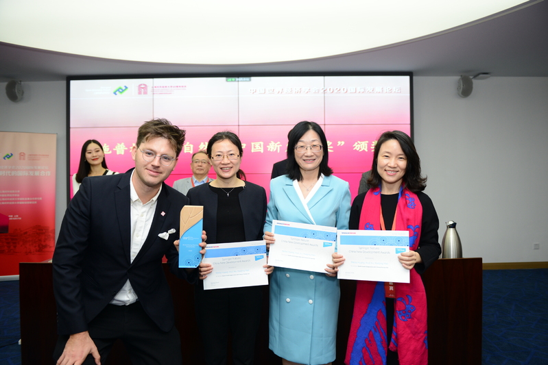 开幕式上还举行了施普林格自然“中国新发展奖”颁奖仪式。国际发展合作研究院院长黄梅波教授、中国农业大学徐秀丽教授和商务部研究院毛小菁研究员合作的《南南合作与中国对外援助》一书成功入选今年“中国新发展奖”。论坛向黄梅波教授等三位作者颁发了获奖证书和奖杯。黄梅波教授介绍了获奖图书的写作背景和主要内容,并发表了获奖感言。