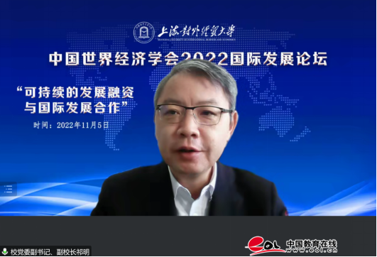 祁明代表上海对外经贸大学向出席论坛的专家学者表示热烈的欢迎。他指出,2021年9月,习近平主席在第七十六届联合国大会提出了“全球发展倡议”。党的二十大报告对“全球发展倡议”做了进一步确认,对中国的全球发展治理方案进行理论升华。中国全球发展理论探索与中国国际发展战略研究亟需跟上时代发展的步伐,国际发展学科建设与国际发展人才培养也日益迫切。举行中国世界经济学会第五届国际发展论坛,围绕“可持续的发展融资与国际发展合作”主题,共同探讨新时期中国国际发展合作面临的国际发展学科建设问题,国际发展合作及国际发展融资的理论与政策问题等,为共同推进中国国际发展学科建设及人才培养,共同探讨中国国际发展合作面临的战略性、前瞻性问题,更好地发挥智库作用提供了宝贵的机会。他期待学校能与各界朋友携手共进,加强优势互补,开展宽领域、深层次务实合作,共同为国家新时期的改革开放与国际发展合作,做出新的更大贡献。
