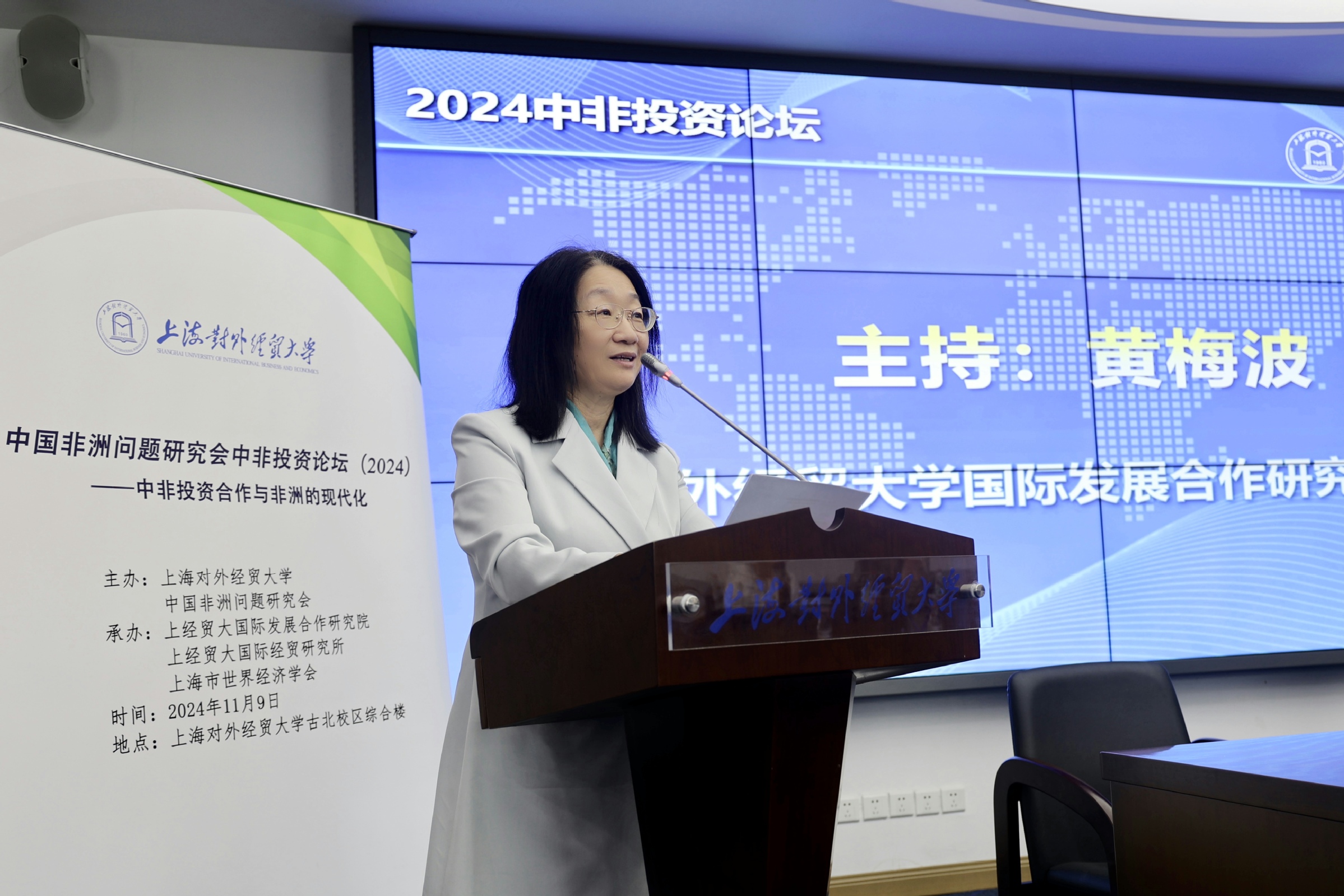 11月9日,由上海对外经贸大学、中国非洲问题研究会主办,上海对外经贸大学国际发展合作研究院、国际经贸研究所、上海市世界经济学会承办的“中国非洲问题研究会中非投资论坛(2024)”在我校古北校区顺利举行。来自中国社科院、中国非洲研究院、上海国际问题研究所、南京大学、湖南大学、南开大学、清华大学、广东外语外贸大学、浙江师范大学、河北工业大学、华侨大学、南京林业大学、河海大学、沈阳化工大学等国内对非研究机构、高校的专家学者出席,共同探讨中国对非投资及其在非洲现代化进程中的作用,为中非发展合作提供了全新的视角与思路。