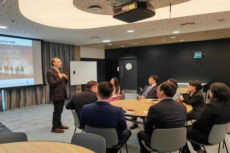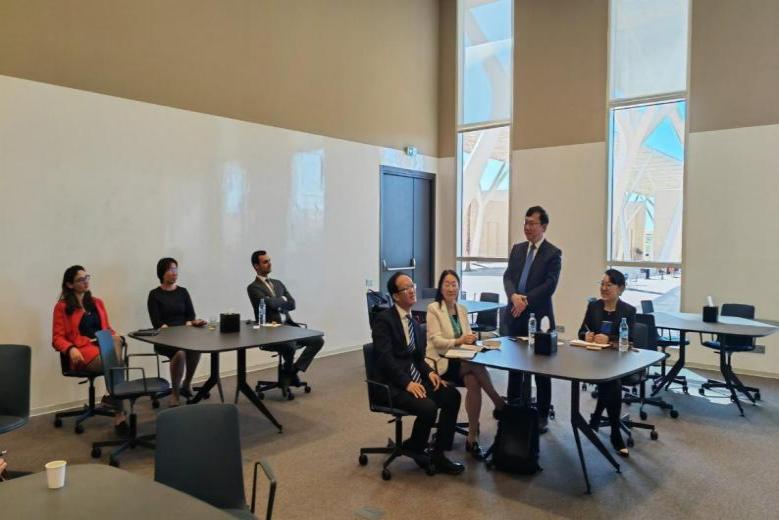 迪拜卧龙岗大学国际处负责人向代表团介绍研究中心情况