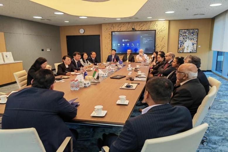 代表团与迪拜卧龙岗大学代表交流