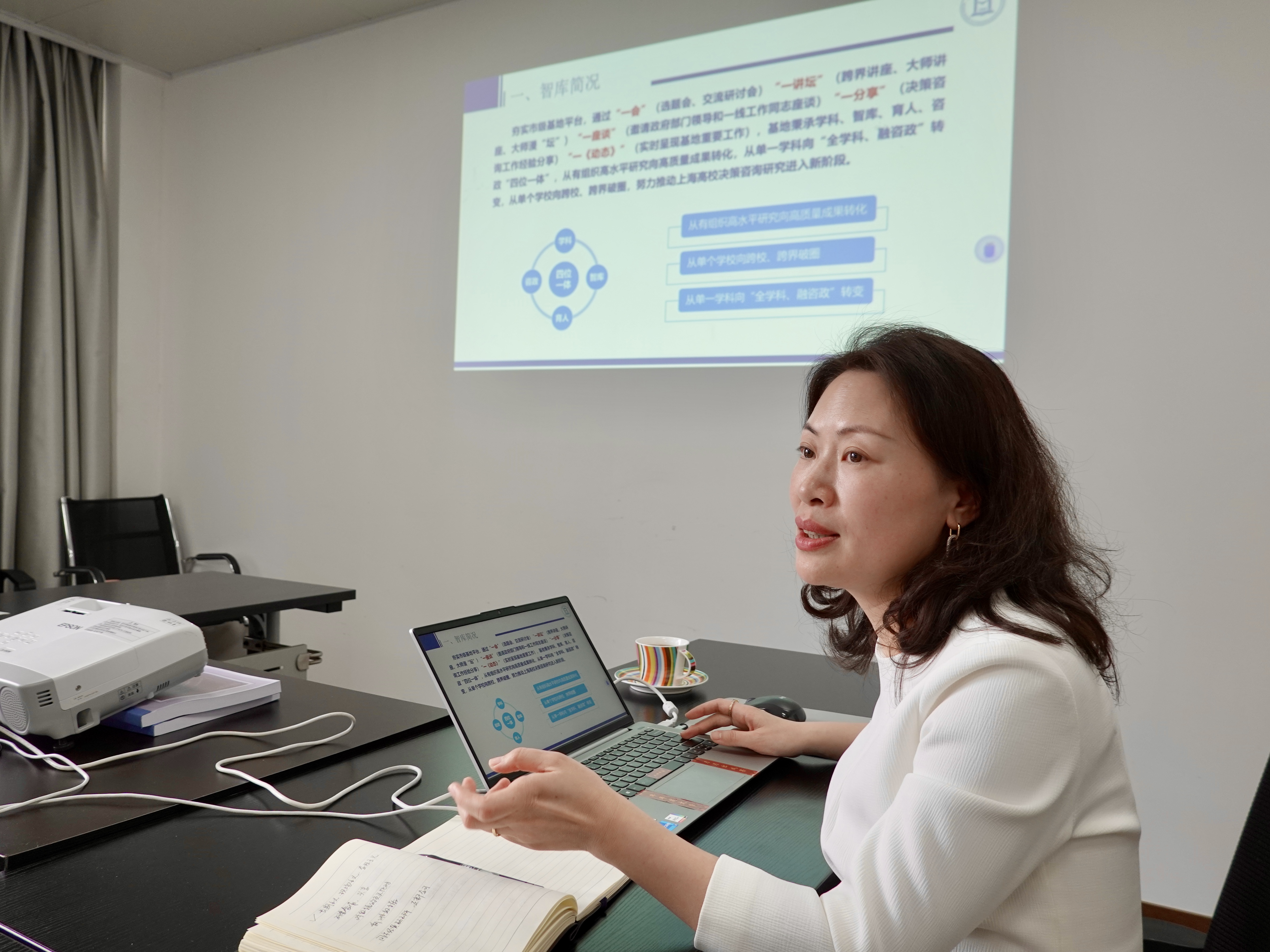 报告中,夏玮副院长对我校智库建设情况作了详细介绍。她介绍了上海高校智库建设的总体情况,上海对外经贸大学智库研究团队成员、智库建设目标、智库工作要点和创新举措等。她表示,学校将聚焦智库工作,围绕“五个国际”(国际贸易、国际投资、国际金融、国际治理和国际发展合作)引领智库高质量发展,开展智库成果培育项目以及举办智库高端论坛。