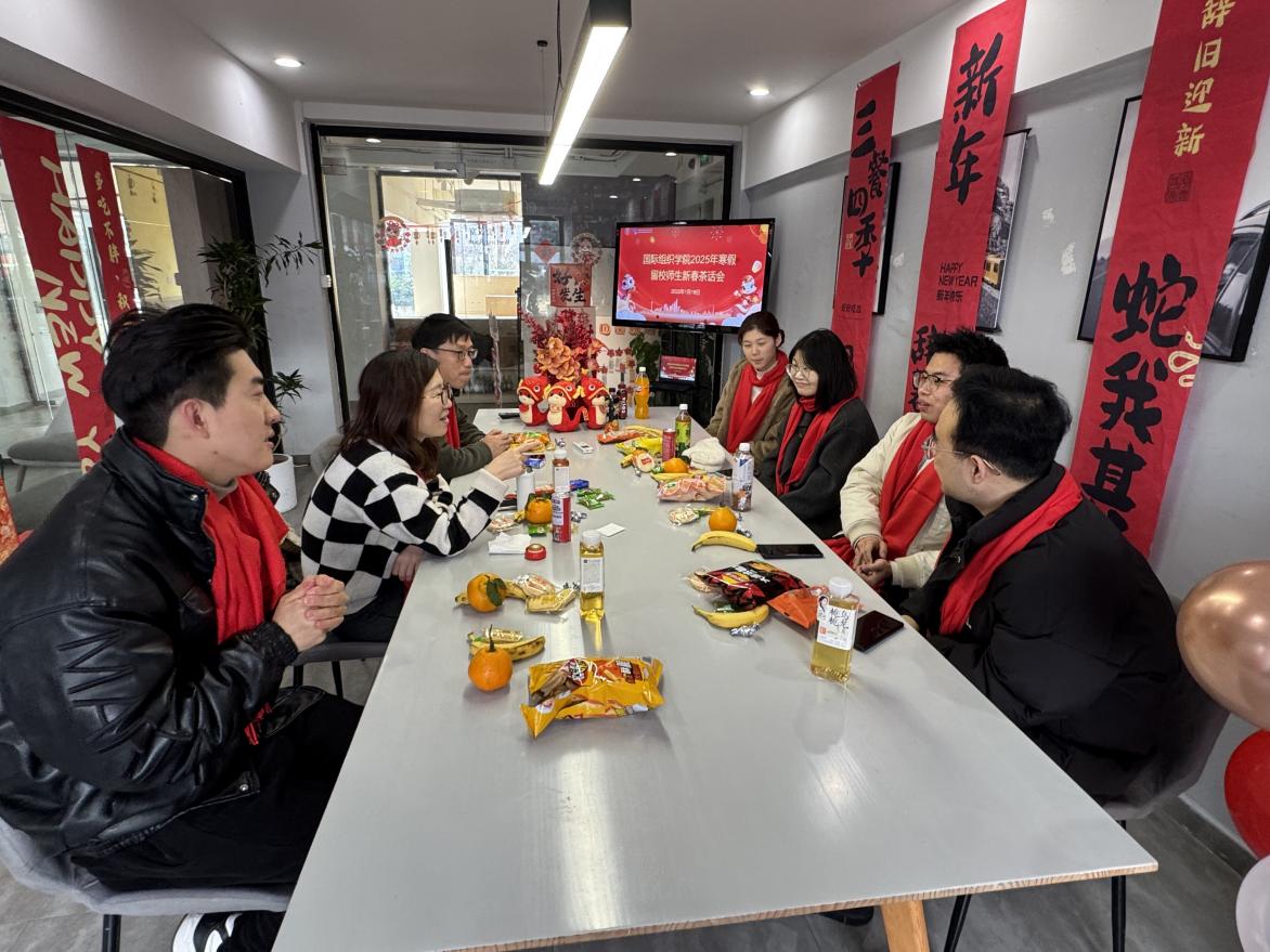 新春将至,年味渐浓。1月19日,国际组织学院(贸易谈判学院)在学生社区举办2025年寒假留校师学生新春茶话会。学院党委书记刘素贞、副书记程栋、辅导员王元昆和留校学生代表欢聚一堂、共话新春,为大家送上新年祝福。