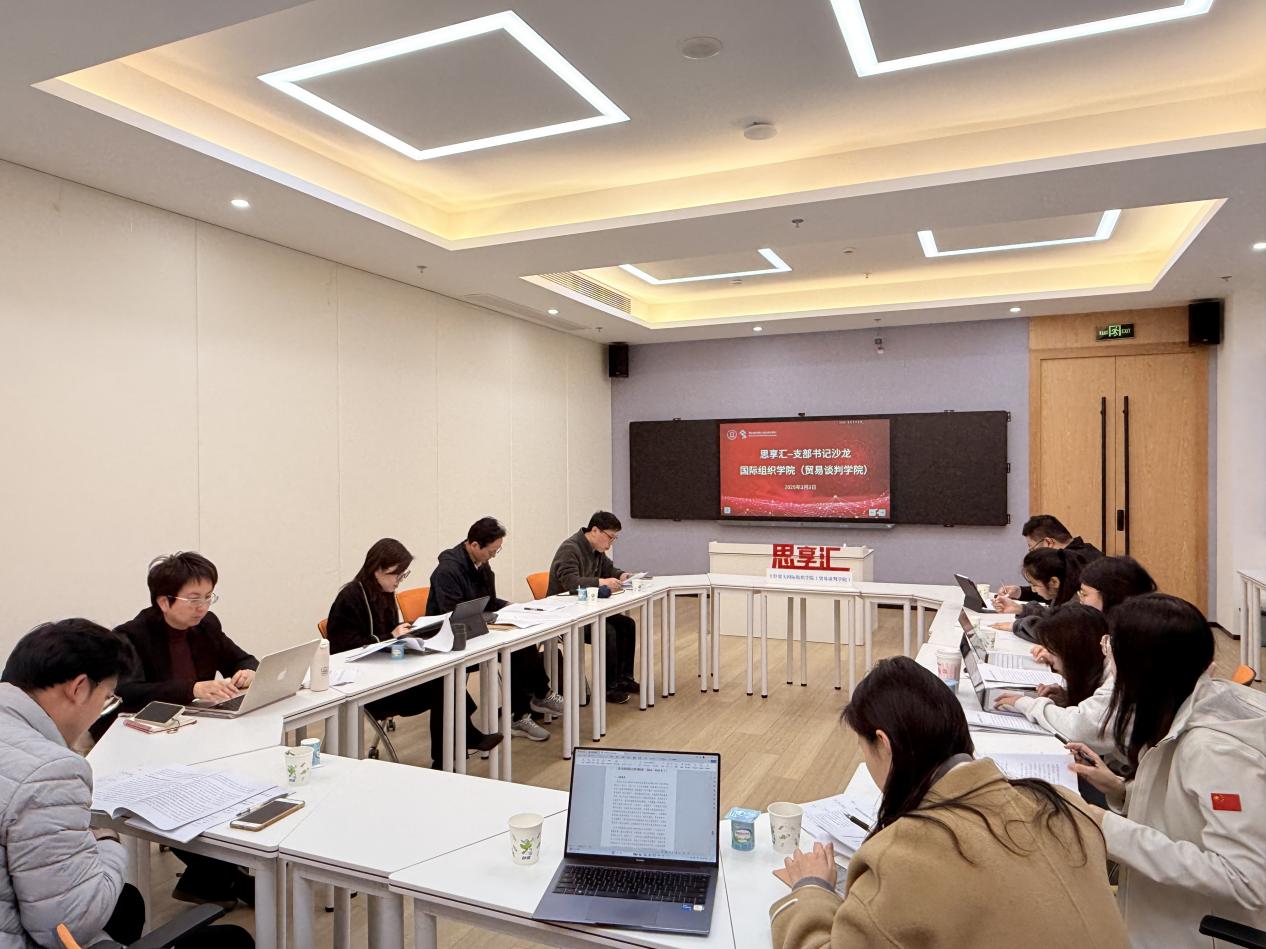 3月3日中午,国际组织学院(贸易谈判学院)党委在信息楼213研讨室召开“思享汇”——支部书记沙龙,开展学习研讨,部署2024年度基层党支部组织生活会和民主评议党员工作以及本学期党建工作重点。学院党委书记刘素贞,党委副书记程栋,教工党支部书记吴晓锋、赫璟,学生党支部书记王元昆、章欣怡,支委代表和辅导员参加了会议。