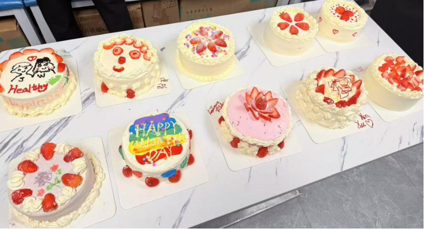 在蛋糕制作活动中,烘焙老师详细介绍了蛋糕的制作方法。学院女教师们充分发挥创意,通过装饰让蛋糕变得生动起来。现场欢声笑语不断,大家在交流中分享技巧,在合作中感受快乐。