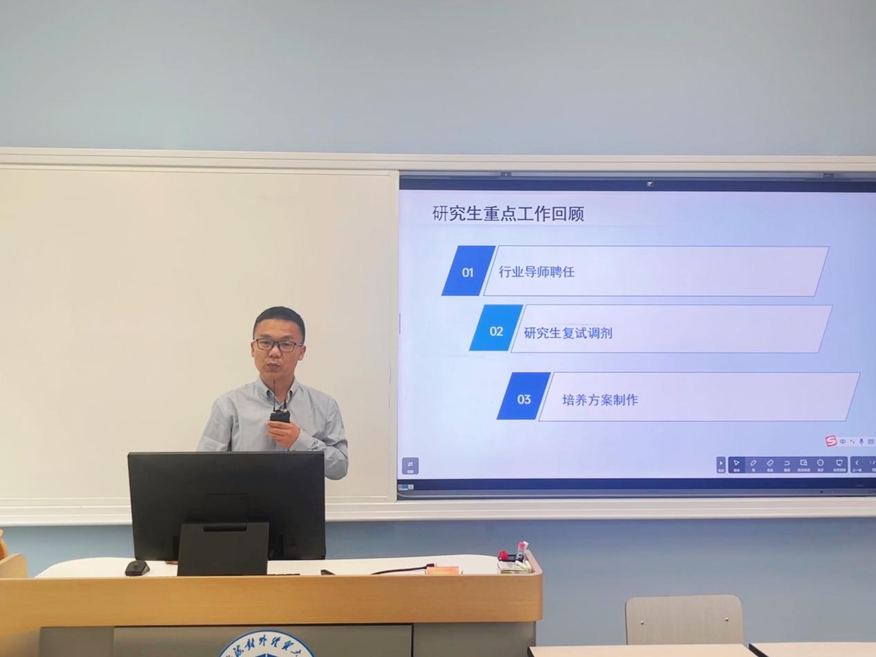 学院领导回顾总结了本学期的主要工作,并对期末重点任务进行了部署。徐昕副院长介绍了本科教育教学工作安排,并就期末考试情况进行提醒。王瑞领副院长通报了研究生教育教学和科研工作情况,着重介绍了学院交叉学科研究团队建设方案,鼓励教师积极申报。赫璟副院长通报了外事工作和人事人才等方面工作。程栋副书记介绍了学生工作重点,就做好学院2025届毕业生就业冲刺工作进行了重点部署。