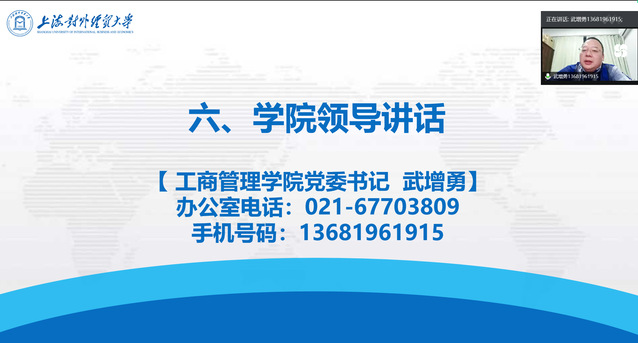 为了贯彻新时代党的教育方针,落实立德树人根本任务,加强学校教育与家庭教育的高效衔接,强化家校合作,促进家校育人机制的规范化和科学化做好新生适应性教育,10月18日晚7点,工商管理学院2021级新生家长见面会在线上顺利召开。工商管理学院党委书记武增勇院长姜秀珍副院长王朝晖学院党委副书记施毅婷及2021级新生家长相聚云端,共话学生美好未来。本次家长会由2021级新生辅导员崔延顺主持