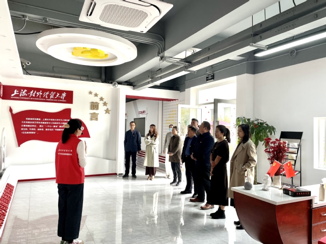在集体学习《条例》开始前,与会人员在讲解员的带领下参观了学校党建服务中心的党史学习教育主题展以及红色引擎助力贸易强国展等,共同学习领会党史中的革命精神以及长期以来学校党建的探索与实践。