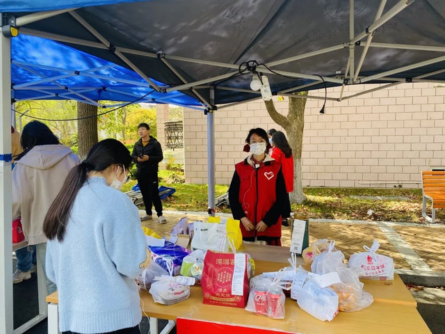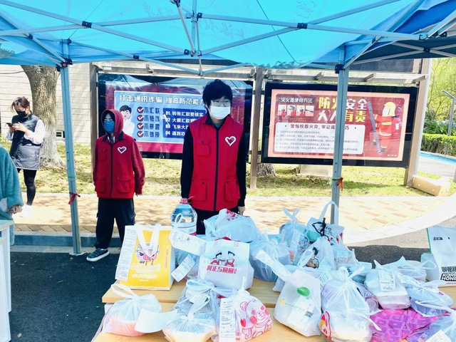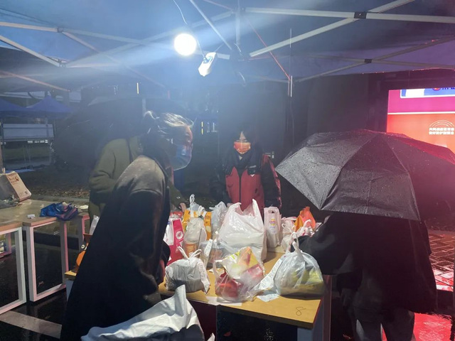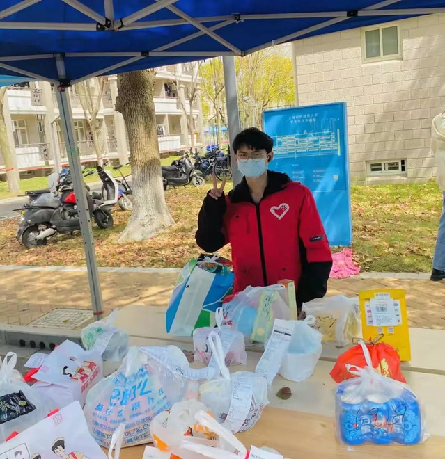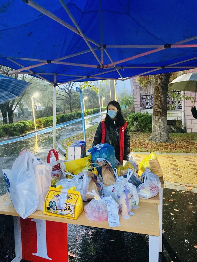 社区外卖自取点的蓝色帐篷下,总见红色的背影。雨横风狂三月暮,寒风凛冽黑幕渐临,唯有鲜红的马甲绽放着光芒,始终指引外卖领取的方向。我们默默坚守在外卖自取点的岗位上,帮助同学们寻找外卖,也帮助保安摆放外卖。万事只有亲身体悟,方能深切感受其中不易,却也收获了满足与成就。相信在大家的共同努力后,终能挥去阴霾,重见阳光。