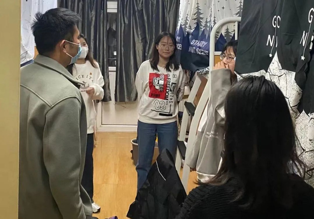 为进一步掌握疫情下学生思想动态,了解学生的切实需求,发挥党团学生骨干的先锋模范带头作用,营造更好的社区学习生活环境,工商管理学院党委积极组织开展学生寝室走访活动,推行党员楼宇负责制。3月31日,学院辅导员崔延顺老师带队党团学生骨干进入到松江校区学生寝室中,MBA党员师生进入到古北校区学生寝室进行走访,听取在校学生目前存在的困难与问题,交流学习生活上的心得。本次活动共安排21名党团学生骨干就松江古北共400多名学生的走访工作进行了分配与安排,确保每一个区域的学生寝室都至少有一名负责党员和学生骨干进行对接服务。