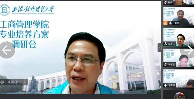 副院长王朝晖向与会人员介绍学院此次方案修订具有以下特点:学院领导重视,教师积极参与,结合校外专家与企业高管意见充分研究与沟通交流;对照工商管理教学质量国家标准,强化面向数智化、国际化、特色化;坚持立德树人,注重商科人才课程思政建设工作。