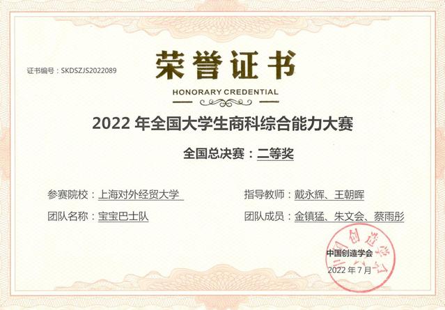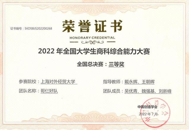 2022年7月17日,由中国创造学会主办,同济大学经济与管理学院、上海策鸿信息科技有限公司、中国创造学会青年工作委员会承办的“2022年全国大学生商科综合能力大赛”全国总决赛圆满落幕。本次大赛吸引了哈尔滨工业大学、上海交通大学、同济大学、武汉大学、中国科学技术大学等145所高校的998支队伍报名参赛。