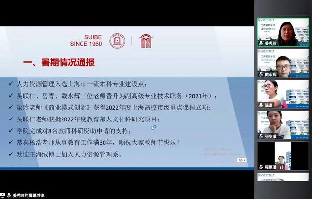 9月9日下午,上海对外经贸大学工商管理学院召开秋季学期首次全院教职工大会(线上)。学院全体教职工参加会议,会议由学院党委书记武增勇主持。