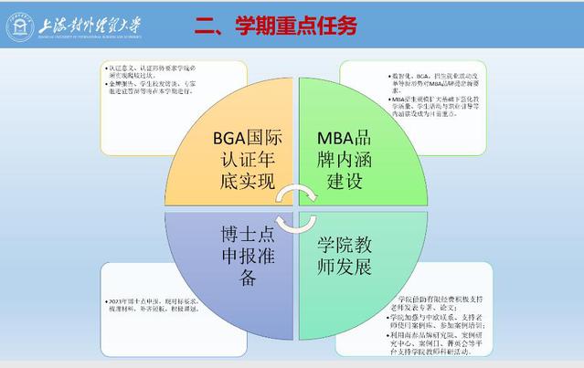 首先,院长姜秀珍回顾了暑假以来学院各项工作情况。随后,她着重从“BGA国际认证、MBA品牌内涵建设、学院教师发展支持、博士点申报等四个方面报告了学院重点工作进展与下一阶段的目标。