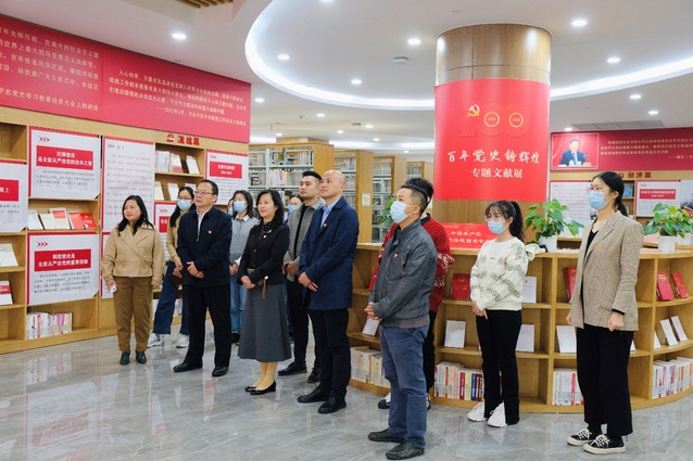 百年历史波澜壮阔,百年初心历久弥坚,历史永远是是最生动、最有说服力的教科书。活动伊始,全体党员师生参观学习“百年党史铸辉煌”专题文献展,从党的建设、统一战线、经济、文化、法治、人物、军事、外教八个方面深刻学习了一百年来党所取得的伟大而辉煌成就。读史可以明智,知古方能鉴今。中国共产党历经风雨锤炼不断砥砺前行,书写了百年筑梦、百年辉煌、百年奋斗的壮丽史诗,通过在图书馆阅读空间里沉浸式学习的方式,参会党员师生对党史有了更深的感悟与心得。