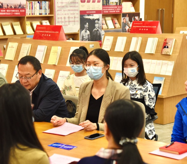 随后,图书馆党支部党员代表李岩老师以《学习贯彻党的二十大精神,聚焦高质量发展,不断加强学科服务和信息素养教育》为主题,立足岗位进行了心得分享与交流。她强调,信息检索能力一直以来都是学生的必备素养之一,党的二十大总结了我国近年来取得的伟大成就,这也对我们学生的学习水平提出了更高的要求,希望全体青年党员能够认真学习党的理论知识,不断提升自己的信息素养,书写好自己的青春故事。