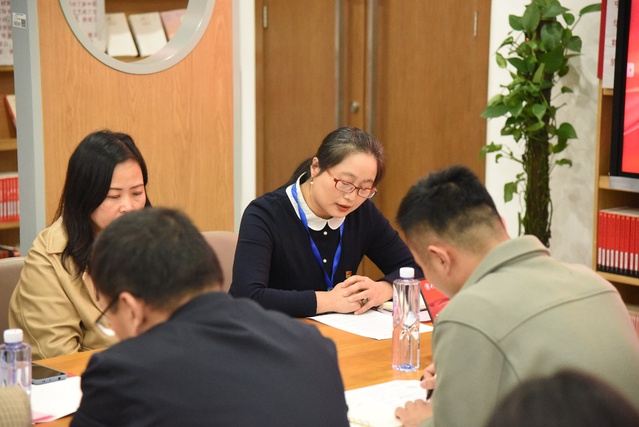 会上,图书馆直属党支部书记王群老师发表致辞。她首先对工商管理学院师生的到来表示热烈欢迎,师生共学互学党的二十大精神,让这一场别开生面的主题党日团日活动更有意义。王老师指出,图书馆一直以来都有大学的“心脏”之称,希望同学们利用好各种学习资源更加积极主动的学党史、悟思想、长才干,以自己的实际行动为中华民族伟大复兴贡献青春力量。