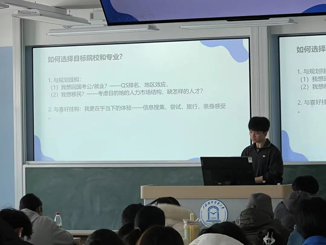 本次讲堂上,向泽霖同学从多个维度展开讲解,深度剖析留学在当下教育与就业环境中的独特优势。对于留学前的各类考量因素,他毫无保留地分享了自己的思考方向,特别指出申请留学材料是展示自我的名片,文书应突出亮点,清晰阐述择校、择专业的理由,避免空洞表述;面试环节也不容小觑,需要提前准备各类基础问题,包括个人履历、专业及生活相关问题,掌握面试技巧,争取留下好印象。