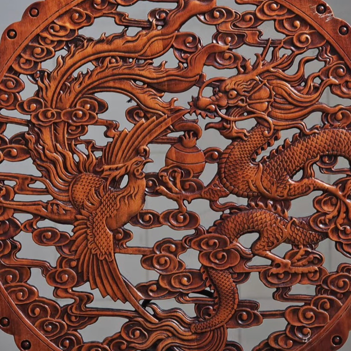 透雕:是在浮雕基础上,镂空背景部分,使其呈现出通透的效果,常用于屏风、灯笼等制作,增加了作品的层次感和艺术感染力。