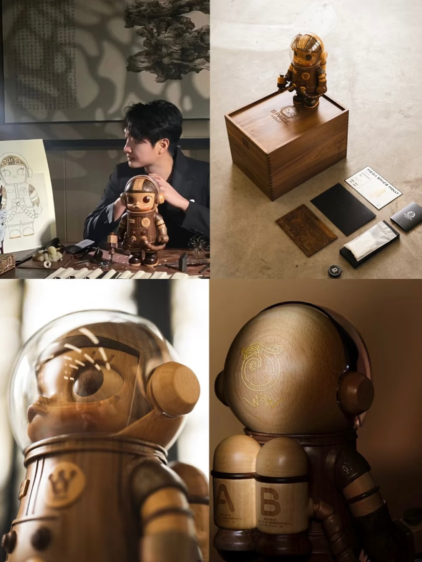 泡泡玛特与雕刻艺术巨匠黄旺旺携手,以「木」的神秘魅力为创意之源,打造出一款穿越时空维度的潮流艺术品。黄旺旺,这位继承百年雕刻世家荣耀的第五代传人,经过多年的磨砺与探索,他将古老的雕刻艺术与现代潮流的独到见解完美融合,开创了一种全新的艺术语言。