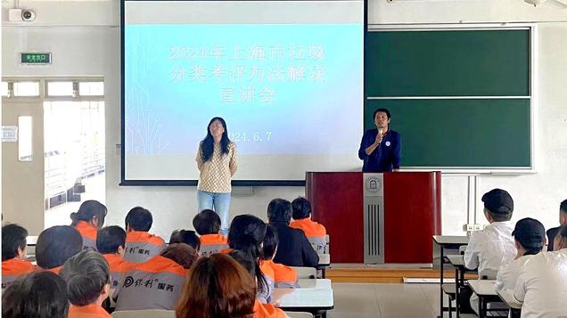 培训会上,培训人员对《上海市生活垃圾管理条例》进行了普法解读,并结合《松江区持续优化生活垃圾全程分类体系工作方案》的要求,以丰富的案例具体讲授了做好高校生活垃圾分类的实操内容。会后,培训人员和与会人员对校区和学生社区的生活垃圾投放情况进行调查,重点检查了学生社区宿舍楼和垃圾投放点等公共区域,并对校区垃圾投放站的管理进行了现场指导。