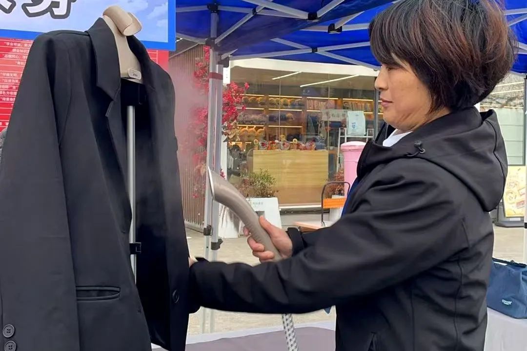 衣物缝补服务点前也人气颇高,工作人员耐心地为师生缝补衣物上的破洞裂口,仔细熨烫那些褶皱的衣角,让一件件衣服重放光彩,让师生们感受到了家一般的温暖。
