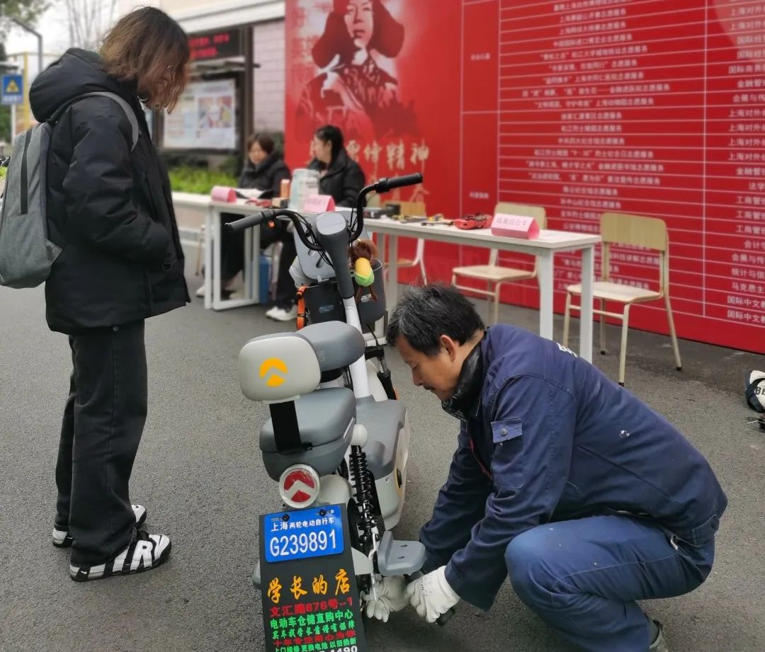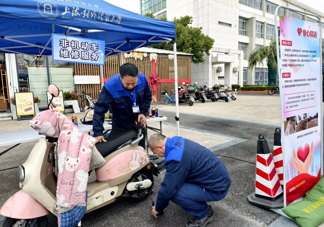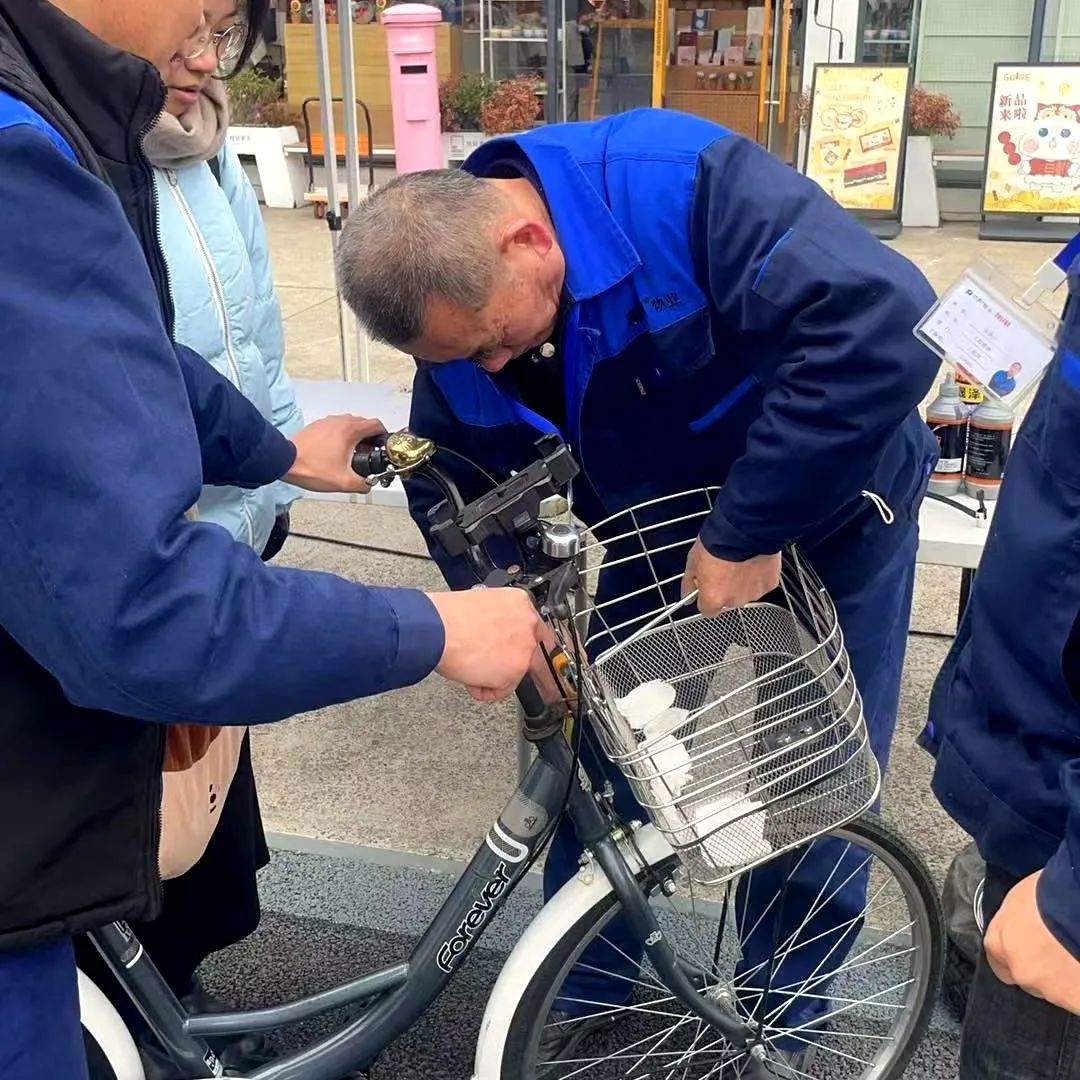 在非机动车维修区域,专业的维修师傅们忙得不亦乐乎。师生们推着出现故障的自行车、电动车前来,师傅们凭借精湛的手艺,一会儿功夫就让这些“罢工”的非机动车重新“上岗”,解决了大家日常出行的后顾之忧。据统计,活动期间累计维修各类非机动车近百辆,许多同学推着修好的车辆,脸上满是欣喜,直呼这样的服务太及时、太实用了。