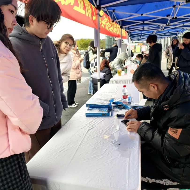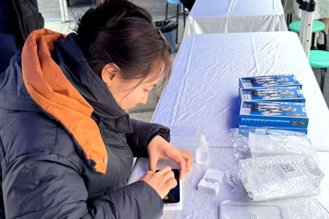 手机贴膜摊位同样热闹,工作人员动作麻利,将一张张崭新的手机膜精准地贴在师生们的手机屏幕上,解决了大家担心手机屏幕刮花等实际问题。活动中,共为师生免费贴膜手机近两百部,拿着焕然一新的手机,大家都感受到了这份细致服务带来的小确幸。