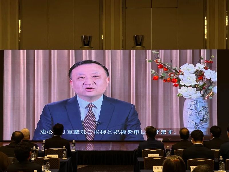 中国驻大阪总领事薛剑代表主办方致辞。薛剑表示,去年11月,中日两国领导人在旧金山再次会晤,重新确认将全面推进战略互惠关系,共同致力于构建契合新时代要求的建设性、稳定的中日关系,为两国关系提供了关键政治引领,给了我们信心和期待。