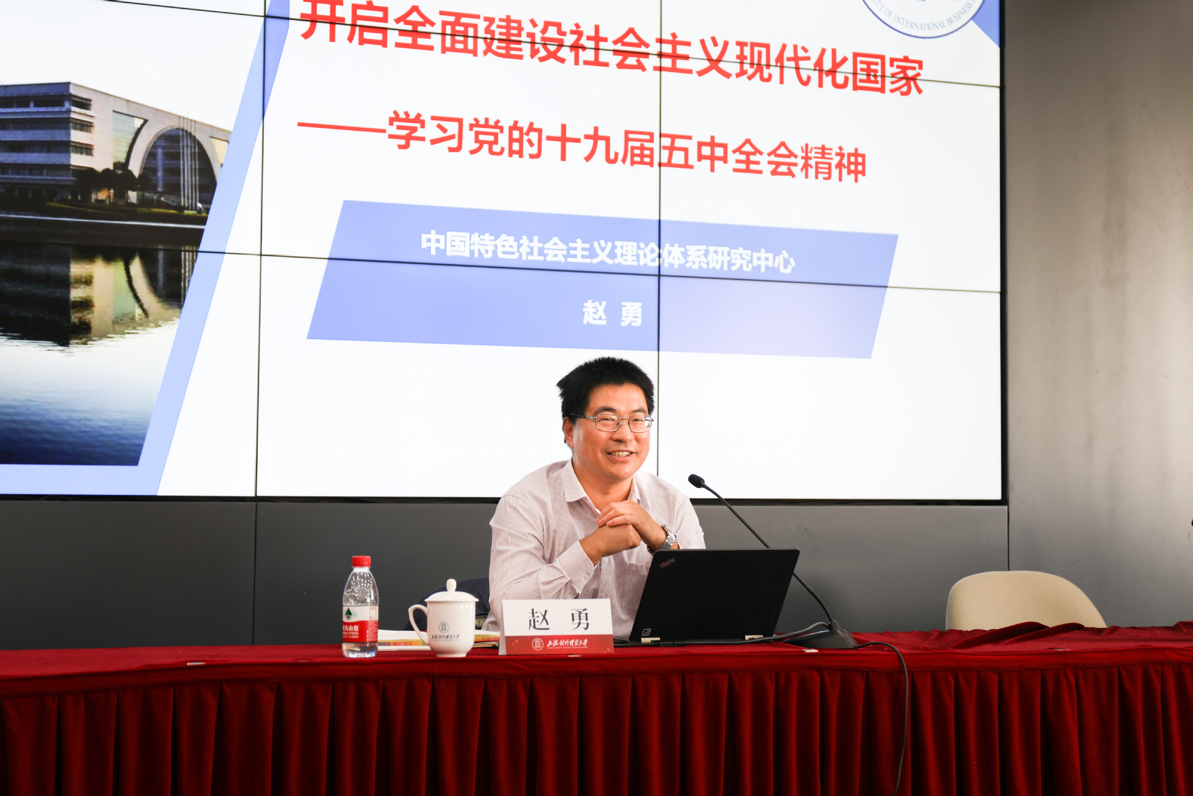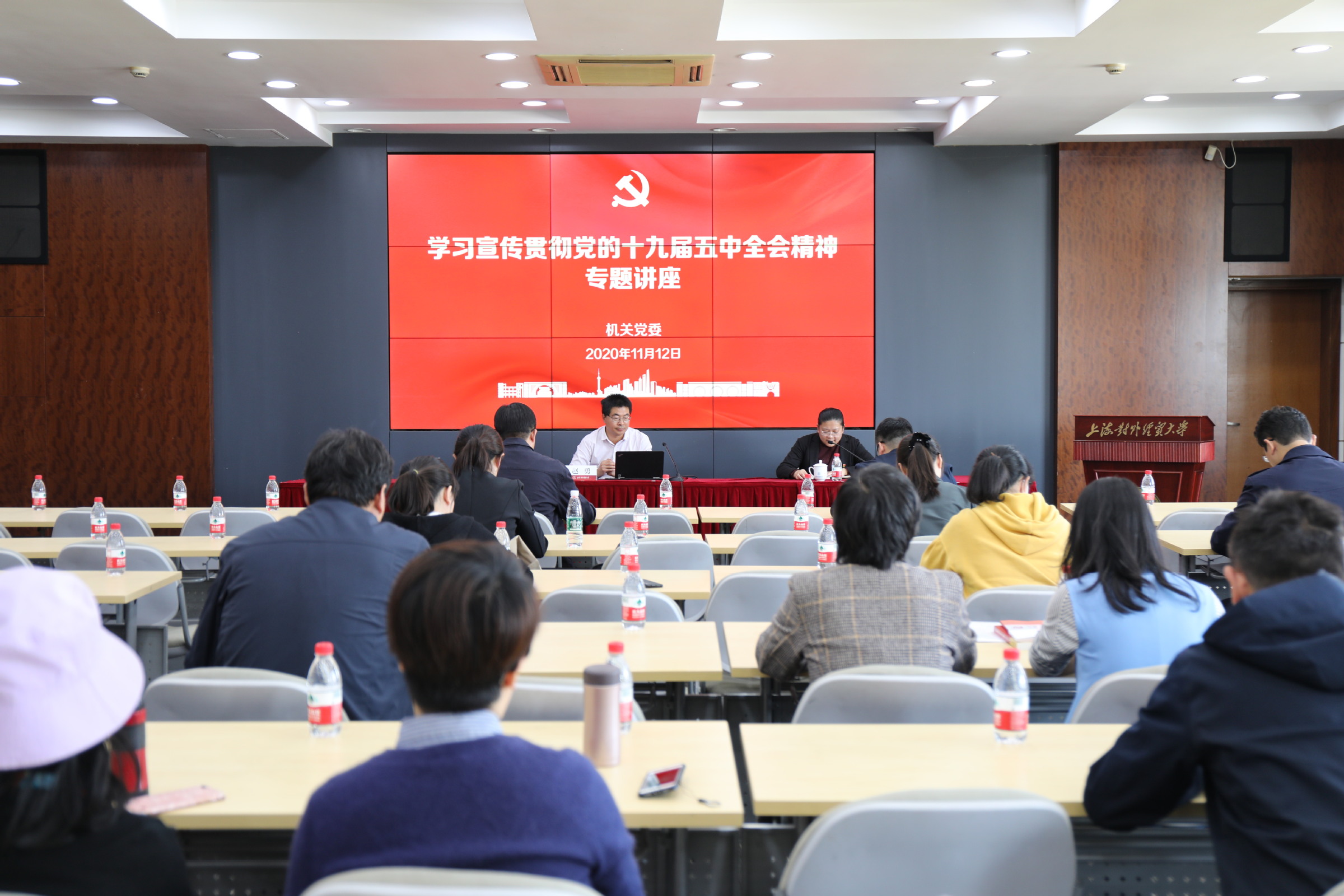 11月12日,机关党委召开学习贯彻党的十九届五中全会精神的专题学习会,学校中国特色社会主义理论体系研究中心主任、党委宣传部副部长赵勇教授作了《开启全面建设社会主义现代化国家》专题报告。