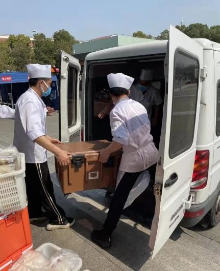 为了保证六千多人的三餐供应及时到位,支部党员蒲玮主动请缨第一时间来到学校,现场协调指挥餐饮保障。他带领校内食堂协同送餐公司确保了每一餐的按时供应;他认真听取学生反馈,从饭菜样式到保温和包装,再到清真需求,不断完善供给;他与食堂员工和志愿者协同配合,让餐食发放越来越顺畅。