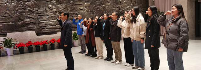 面对纪念馆序厅内悬挂的党旗,研究生院院长刘永辉同志带领全体党员重温入党誓词,定格下这一“红色瞬间”。大家重温入党初心,将发扬为人民服务宗旨,紧密地团结在以习近平同志为核心的党中央周围,增强“四个意识”,坚定“四个自信”,做到“两个维护”,坚定不移地跟党走。
