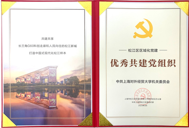 近日,机关党委荣获松江区“优秀共建党组织”称号。该荣誉由上海市松江区区域化党建工作联席会议办公室、松江区委组织部颁发。