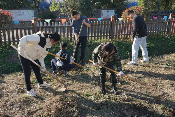 随后,党员师生共同走进田间地头,实践农耕,一同锄地除草,帮助小院完成田地整修。