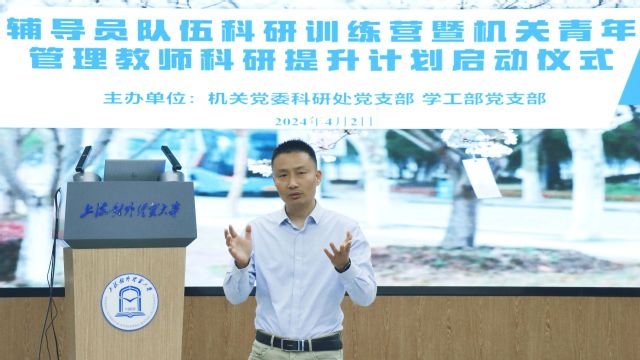 为进一步加强我校辅导员和机关管理队伍建设,提升队伍科研工作水平和能力,4月2日上午,科研处党支部联合学工部党支部在图文信息大楼213会议室召开2024年上海对外经贸大学辅导员队伍科研训练营暨机关青年管理教师科研提升计划启动仪式。上海市教育科学研究院研究员、博士生导师方建锋应邀作专题讲座,科研处党支部书记、处长闫海洲,学工部党支部书记、部长缪韵笛,科研处副处长许建红出席活动,启动仪式由党委学工部副部长张晴晴主持。学院党组织副书记、全体辅导员、机关青年管理教师参会学习。