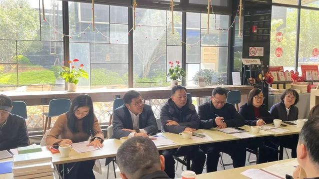 活动伊始,双方齐聚在东方出版中心的中版书房,展开了深入的座谈交流。东方出版中心党委委员、纪委书记、副总经理宋伟峰对学术期刊社党支部的到来表示欢迎,向大家介绍了东方出版中心的组建历史、现行架构、理念方针、资产运营情况、及未来规划。他表示,双方的契合点很多,希望通过此次共建可以加强合作,共谋发展。总编辑助理李默耘介绍了出版中心的出版主业布局及特色图书的出版情况。支部书记傅杰简要介绍了东方出版中心第三党支部的党建情况,希望通过共建活动来巩固主题教育成果,实现理论联学、资源共享与业务合作。