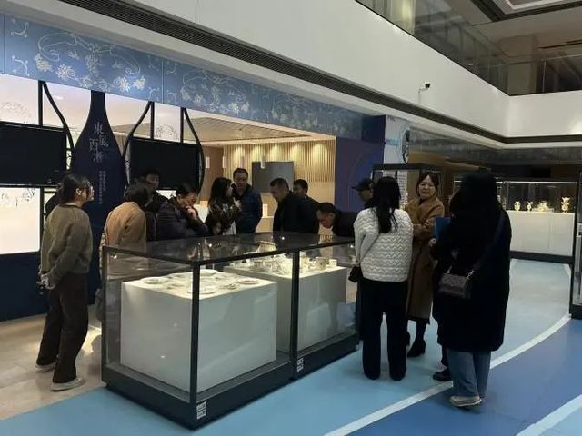 座谈交流结束后,双方进行了调研参观活动。傅杰带领学术期刊社老师来到东方出版中心产业园区参观学习,为大家详细介绍了东方出版中心的发展历程、图书出版、行业影响力等建设成果。随后,东方出版中心一行来到上海对外经贸大学古北校区,一起参观了校园及学校博物馆,参观了“东风西渐—中国瓷器文化对欧洲文化发展的影响”的主题展览,博物馆老师带领大家了解了“东风西渐”展品与学校的历史底蕴、办学理念,体会了中华文化在校内外多层次、多领域的传播。